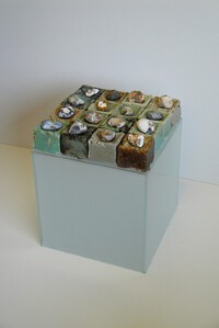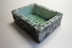 2024Keramieke vissen aan overhangende tak gehangen boven de vijver op Landerij Esveld